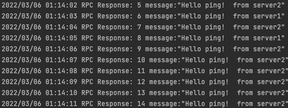 클라이언트가 n번 요청을 보낼 때, server 1, server 2 subchannel을 만들고 하나씩 보내는 것을 확인할 수 있다.
